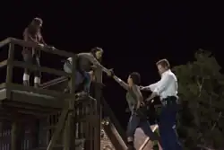 Glenn opens the gate so Maggie and Enid can climb down the fuel truck, and they with Sasha and Abraham cover Daryl who fills a pond with fuel and ignites it with the RPG launcher. The enormous pool of fire in the night immediately draws the attention of the walkers. This takes pressure off of those fighting just as they were about to be overwhelmed, allowing them to gain the upper hand and continue relentlessly. The next morning, the survivors regroup after having killed every last walker. Rick pleads with his unconscious son to pull through, hopeful for the future as the Alexandrians have proven they have what it takes to live, now believing that Deanna's plans could be achieved. Carl's fingers close around Rick's hand in seeming response.
