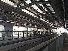 Nopparat station (Thai: สถานีนพรัตน์) is a Bangkok MRT station on the Pink Line. The station is located on Ram Inthra Road, near Nopparat Rajathanee Hospital in Khan Na Yao district, Bangkok.[1] The station has four exits.[2] It opened on 21 November 2023 as part of trial operations on the entire Pink Line.[3][4]