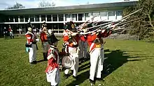 The East Norfolk Militia is a Napoleonic era re-enactment group, formed in 2000 to help celebrate the bicentenary of Horatio Nelson, 1st Viscount Nelson being awarded the Freedom of the borough of Great Yarmouth.[40] In 2005 they took part in events to mark the bicentenary of the Battle of Trafalgar at the Royal Norfolk Show.[41] They perform ceremonial and guard duties for events in and around East Anglia.[42][43] in addition to taking part in living history events, and took part in the bicentenary re-enactment of the Battle of Waterloo.[44]