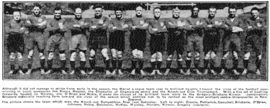 54. "Western Suburbs' Tour/Marists Narrowly Defeated/Thrilling Opening Match". Auckland Star. Vol. LXV, no. 226. 24 September 1934. p. 13. Retrieved 19 January 2020.