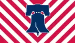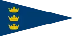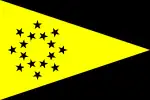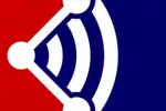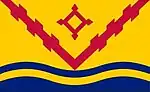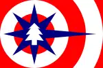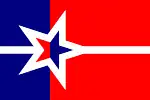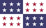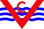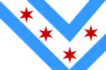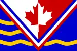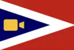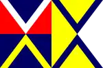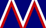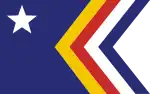 The association's flag consists of a large white "V" (an inverted chevron) separating a blue triangle above from two red triangles on either side. The length of the top side of the blue triangle is the same as the width of the flag ("width" is the vertical dimension when flying from a flagpole). The flag's proportions are 2:3.