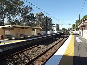 North Boondall station opened in 1882 as Cabbage Tree Creek,[1][2] it was later renamed Nudgee College,[3] then renamed as Boondall in 1923 until 1986. The station was renamed North Boondall upon opening of the Brisbane Entertainment Centre in 1986[4]
