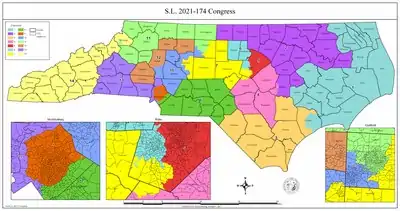 - ↑ Robertson, Gary D. (October 25, 2023). "North Carolina Republicans put exclamation mark on pivotal annual session with redistricting maps". AP News. Retrieved October 26, 2023.