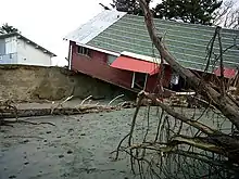 By 2016, 60 residential properties and 537 land parcels totaling over 2,018 acres (817 ha) had eroded into the ocean.[6] North Cove has been nicknamed "Washaway Beach," and its loss of over 100 feet (30 m) of land per year has led to it being labeled the fastest-eroding shoreline on the West Coast.[7]
