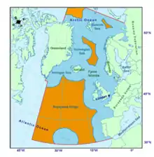 NEAFC was founded in 1980 and established by the Convention on Future Multilateral Cooperation in Northeast Atlantic Fisheries.[1] It replaced an earlier commission by the same name established by the North-East Atlantic Fisheries Convention of 24 January 1959. It states that its objective is "to ensure the long-term conservation and optimum utilization of the fishery resources in its Convention Area, providing sustainable economic, environmental and social benefits."[2] The area covered by the NEAFC Convention stretches from the southern tip of Greenland, east to the Barents Sea, and south to Portugal.[3] However, as an exception, the Baltic Sea and the Danish straits have been excluded from NEAFC jurisdiction, being managed instead directly by EU and Russia, in line with a bilateral general regional fishery management arrangement.