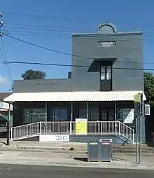 North Ryde's main street is Cox's Road (the lower part of which was previously Coomassie Street).[21] and was originally sandstone-lined to make it easier to haul goods up and down from the wharf on the Lane Cove River to the top of the hill. Cox's Road was named after Joseph Cox who owned land and lived in the area. Coxs Road was spelled with an apostrophe (Cox's) until recent times, though local street signs and Ryde Council still call it Cox's Road. The original North Ryde Post Office on Lane Cove Road was opened in 1885 and in 1908 was moved to Cox's Road, and has since relocated premises within the Cox's Road Shopping precinct at least six times. The North Ryde School of Arts and Literary Institute, built in 1901 on land donated by William Cox of Pomona, became the venue for the annual ball, community meetings, fetes, art exhibitions, dances and culture. Extensions were built in 1907 with the North Ryde Library Branch located here. Cox’s Road has 2 schools a Public and Catholic school, they are both primary schools.The original building was demolished in 1980 and a new Community Centre, School of Arts and Library complex was built.[12]