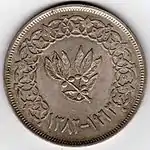 In 1962, the Arab Republic first issued bronze 1⁄2 and 1 buqsha, 1⁄20, 1⁄10, 2⁄10 and 1⁄4 rial in a similar style to those of the last king. These were followed in 1963 by a new coinage, consisting of aluminium-bronze 1⁄2, 1, and 2 buqsha and silver 5, 10 and 20 buqsha and 1 rial.