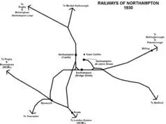- ↑ West Northamptonshire Development Corporation (28 June 2012). "Redevelopment of Northampton rail station a step closer". Archived from the original on 18 September 2012. Retrieved 10 August 2014.