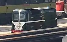 Greenbat, also known as U2, is one of many battery electric locomotives that were built in Leeds by Greenwood & Batley. This particular engine was built in 1957 for Thomas Marshall & Co. of Storrs Bridge Fireclay Mine in Yorkshire. Its builder’s number is 2872 and was originally built to an unusual gauge of 16 in (406 mm). When the mine closed, the engine was brought to Ravenglass in 1982, where the wheels were re-profiled to the Ratty's gauge and then became a versatile engine with which to shunt coaching stock. It awaits refurbishment at Ravenglass.