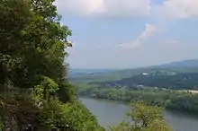 Susquehanna River from the Shikellamy State Park overlook, looking upriver. The West Branch Susquehanna River is in the foreground.