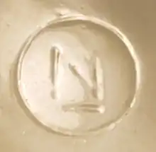 The most common Northwood maker mark was an underlined capital N centered inside of a circle.[13][14] Not all pieces carry the mark but it is seen most often on carnival glass items. L.G. Wright also used a mark like it, but was forced to stop using it.[13]