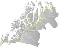 County Road 86 (Norwegian: Fylkesvei 86) is a 110-kilometre-long (68 mi) highway in Troms og Finnmark county, Norway. The eastern end of the road begins in the village of Andselv (in the Bardufoss area of Målselv Municipality). It then heads west to the Gisund Bridge connecting the mainland of Norway to the large island of Senja. The road then heads across the island of Senja to the village of Torsken on the western coast of Senja Municipality. Part of the route is one of eighteen designated National Tourist Routes in Norway.[1][2]