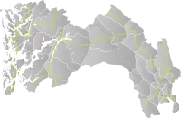 Norwegian National Road 7 (Norwegian: Riksvei 7, Rv7) is a national road in Norway which runs from the town of Hønefoss in Viken county to the village of Granvin in Vestland county. The route is 387.6 kilometres (240.8 mi) long and runs east–west through Viken and Vestland counties over the vast Hardangervidda plateau.