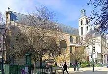 The church was founded by the Serfs de Marie, a community of monks founded in 1223 in Marseille, who followed the rules of Saint Augustine, and wore a black robe with a white mantle. With the support of King Louis XIII, they moved to Paris, and were given a large plot of land in the Marais district, just outside the city walls, formerly owned by the Order of the Knights Templar. It extended the length of the old rue de la Petite Parchemerie (now rue des Blancs-Manteaux) just outside the city walls in the Marais district. They built their first church there in 1258. Soon afterwards, However, in 1274, the Second Council of Lyon, held by the Vatican, decided to dissolve twenty-two different religious orders, including the Serfs de Marie. The abbey was transferred to the Order of the Brothers of Saint Guillaume of Malval and then, in 1618, to the Benedictine monks of the Order of Saint Maurus, who placed the novice monks there for their education. The monks no longer wore the white mantle, but the name "Blancs-Manteaux" stayed with the church.[2]