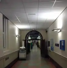 The Bagthorpe Infirmary became the City Infirmary in 1930 and the City Hospital in 1937 before joining the National Health Service in 1948.[3] The Nottingham School of Physiotherapy was opened by Group Captain Douglas Bader in 1965.[2] The Bagthorpe Workhouse, which had developed into a facility for the elderly known as Sherwood Hospital, closed as a separate entity in 1983.[4]