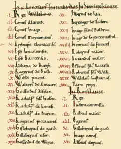 The Domesday Book of 1086 AD lists (in the following order) King William the Conqueror's tenants-in-chief in Snotinghscire (Nottinghamshire), following the Norman Conquest of England:[1][2]