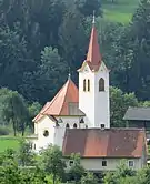 The parish church in the settlement is a popular pilgrimage church. It is known as Our Lady, Star of the Sea Church (Slovene: Cerkev sv. Marije Zvezde) and belongs to the Roman Catholic Diocese of Celje. It has a large nave with three chapels on either side and two belfries on its western facade. It was built until 1854 by the master builder Matej Medved on the site of a former three-nave Renaissance church, which burnt in fire in 1850. A second church in the hamlet of Šmiklavž is dedicated to Saint Nicholas. It is octagonal in its floor plan with an added belfry and two rectangular chapels. It was built between 1869 and 1872.[4] The third church stands in Zgornji Dol and is dedicated to the Presentation of Mary. It was erected in the early 16th century and redesigned in the 19th century.[5][6]