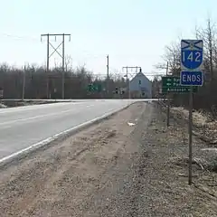 Highway 142 is a 2-lane limited-access road in Cumberland County, Nova Scotia, Canada. It links Highway 104 at Exit 5 in Salt Springs Station to the town of Springhill. The 6-kilometre (4 mi) highway crosses the Canadian National Railway main line about 4.5 kilometres (2.8 mi) outside Springhill. There are several logging roads that have access onto the highway.[1]