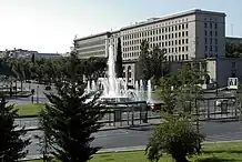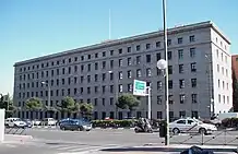 The original project was the work of the architect Secundino Zuazo Ugalde and was soon sponsored by the then Minister of Public Works, Indalecio Prieto.[1] Its construction began in 1933 and, although it was paralyzed during the Civil War, the entire complex was completed in 1942. It currently houses the headquarters of the Ministry of Labour and the Ministry of Public Works, among others. The entire architectural complex is integrated into the so-called AZCA center, one of the most important business centers and offices in the capital. In the vicinity is also the Nuevos Ministerios station, a multiple exchanger with services of Bus, Metro and Cercanías.
