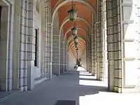 Nuevos Ministerios (English: New Ministries) is a government complex in central Madrid, Spain. The complex houses several government departments: Development, Labour, Social Security, and Ecological Transition. It is located in the block delimited by the Paseo de la Castellana, the Raimundo Fernández Villaverde street, Agustín de Betancourt street and the San Juan de la Cruz square.