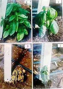 - ↑ Reuveni, R.; Dudai, N.; Putievsky, E.; Elmer, W. H.; Wick, R. L. (Sep 10, 2012). "Related article entitled "Evaluation and Identification of Basil Germ Plasm for Resistance to Fusarium oxysporum f. sp. basilicum". Plant Disease. Plant disease, 81, Pages 1077-1081. 81 (9): 1077–1081. doi:10.1094/PDIS.1997.81.9.1077. PMID 30861963.
