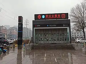 Nujianggongyuan (Chinese: 怒江公园站; pinyin: Nùjiānggōngyuán Zhàn) is a station and the northern terminus on Line 9 of the Shenyang Metro.[1] The station opened on 25 May 2019.[2]