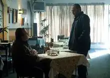 ![]() Stan Larsen (Brent Sexton, right) speaks with Janek Kovarsky (Don Thompson, left), not knowing that the man may be behind his daughter's murder. | |