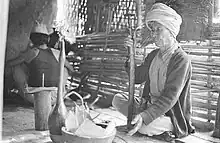 The nuwāgi cycle celebrates the first fruits offering and is the most important ritual occasion during the harvest season in autumn, in the month of Kārtik (October/ November). The ancestors are presented with the new rice or millet, and only after they have eaten can the household consume the newly harvested grains. Thus it is a happy occasion: it is a time when the work of the year is about to be completed, the hard days of food scarcity (Nep. anikāl) are over and food is plentiful again. As a good harvest depends on the support of the ancestors, they have to be satisfied and given their share. As honoured guests, they are invited and given the best of foods before everybody else, and they are asked to remain benevolent and supportive. The nuwāgi is a half-day feast marked by a communal meal to which a good number of relatives and neighbours are invited.[6]