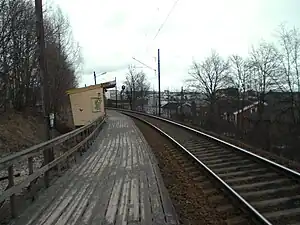 Nydalen station (Norwegian: Nydalen holdeplass) is a railway station on the Gjøvik Line in Oslo, Norway. The station was built opened in 1946, and is located between Grefsen and Kjelsås. Like most of the local Oslo stations on the Gjøvik Line, Nydalen is a small station. It is unmanned, has only a single wooden platform, and is served only by commuter trains. Close by, but not in connection, is a subway station with the same name, Nydalen.