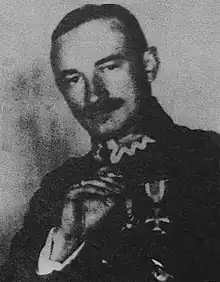 The Poles advanced to the city's west and north, occupying Didžioji Riešė, Lentvaris and Nemenčinė, among others.[5] Meanwhile, Lithuania reinforced its forces in the Vilnius region, because they were preparing to retake Vilnius.[6] On 18 October 1920, the "revolt" was also joined by the 13th Wilno Uhlan Regiment, also known as the Regiment of "the best sons of Vilnius Region", many of whom began their military history as early as December 1918 in Vilnius' Lukiškės Square, from where commanded by the brothers Władysław and Jerzy Dąmbrowski, they set off to fight for their homeland.[5]