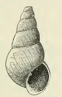The creamy-white shell is very broadly elongate-conic. It measures 3.3 mm. The nuclear whorls are obliquely immersed in the first of the succeeding turns. The five post-nuclear whorls are moderately well rounded, slightly shouldered at the summit. They are marked by decidedly retractive lines of growth and numerous, strong, incised, spiral lines. The sutures are constricted. The periphery of the body whorl is subangulated and inflated. The base of the shell is short and narrowly umbilicated. It is marked like the spire. The large aperture is somewhat effuse anteriorly. The outer lip is thin and strongly curved. The inner lip is slender, decidedly curved and reflected, and provided with a moderately strong fold a little anterior to its insertion.[3]