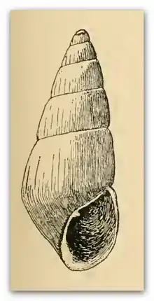 The slender shell is elongate-conic, semitranslucent and shining. It measures 3.6 mm. The nuclear whorls are moderately large, almost completely obliquely immersed in the first of the succeeding whorls; the peripheral edge only of the last volution is visible above this. The six post-nuclear whorls are situated rather high between the sutures, slightly rounded (almost flattened), faintly shouldered at the summit, apparently without axial or spiral sculpture. The whorls are feebly angulated at the periphery, and the summits of succeeding turns fall a little anterior to it, which renders the sutures well impressed. The base of the body whorl is large, rounded, very narrowly umbilicated. The aperture is large, subovate, somewhat produced at the junction of the outer lip and columella. The posterior angle is acute. The outer lip is thin. The columella slender, decidedly curved and somewhat revolute, provided with a prominent lamellar fold at its insertion. The parietal wall is covered by a thin callus.[1]