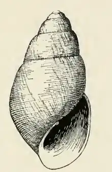 The light yellow shell has an elongate-ovate shape and is stout and strong. Its length measures 4.5 mm. (The whorls of the protoconch are decollated.) The 5+12 whorls of the teleoconch are flattened on their outer three-fourths, rounding suddenly to the closely appressed summit, on the posterior fourth. The entire surface of the shell is marked by lines of growth and numerous equal and equally spaced, well marked spiral striations, of which about 28 occur between the sutures of the penultimate whorl. The sutures are well impressed. The periphery of the body whorl is somewhat angulated. The base of the shell is elongated, rounded, and marked like the spire. The aperture is ovate, and slightly effuse anteriorly. The posterior angle is acute. The outer lip is thin. The columella is short, strongly curved and reflected. It is reinforced for the greater part by the attenuated base and provided with a strong oblique fold at its insertion. The parietal wall is covered by a thin callus.[3]
