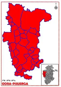 Odra-Pisuerga is a comarca (county, but without administrative roles) located in the west of the province of Burgos, in the autonomous community of Castile and León, Spain. It is bounded by the west and south-west by the province of Palencia, south-east by the Arlanza comarca, west by the Alfoz de Burgos and north by the Páramos comarca.