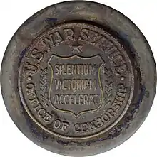 The Office of Censorship was an emergency wartime agency set up by the United States federal government on December 19, 1941, to aid in the censorship of all communications coming into and going out of the United States, including its territories and the Philippines.[1] The efforts of the Office of Censorship to balance the protection of sensitive war related information with the constitutional freedoms of the press is considered largely successful.[2]