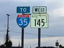 "TO Interstate 35" signage is also present along westbound SH-145.