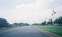 Oklahoma Senate Bill 280, passed by the 2003 Legislature, named the highway the Pearl Harbor/USS Oklahoma Memorial Highway. This designation was subsequently applied by the Oklahoma Transportation Commission on 2003-06-02.[3] Signage was installed at each end of the highway displaying the name.