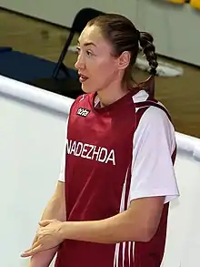 Oksana Anatolyevna Zakalyuzhnaya (Russian: Оксана Анатольевна Закалюжная, born 18 December 1977) is a retired Russian basketball center. She was part of the Russian team that won the silver medal at the 2002 World Championships.[1] Between 1994 and 2012 she played for Russian, American, Hungarian and Turkish clubs, winning the Turkish national title with Fenerbahçe in 2001, and reaching the European Cup finals in 2008 and 2010.[2][3] She also played in the Women's National Basketball Association (WNBA) for the Detroit Shock and Phoenix Mercury.[4]
