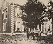 The original approach road that is directed towards the Hadensville railroad station, is framed by a closely spaced allée of Sugar Maple trees. According to oral history, it's believed that the 12 oaks trees once planted here have all died and were later replaced with maples planted closer to the drive to preserve farm fields on the left and right of the approach road. Originally, the drive terminated in a carriage loop around the front of the mansion, complete with carriage steps and two hitching posts. The property retains its original smokehouse.[3]