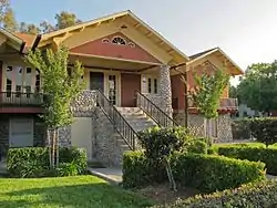 The Old San Antonio Hospital is a historic building located at 792 West Arrow Highway in Upland, California. Built in 1907, the building served as Upland's first hospital. Prominent Southern California architect Myron Hunt designed the building, which makes extensive use of riverbed rock, a common local building material. The building's design features an entrance portico with stone columns, French doors along the length of the south wall, projecting eaves with carved beams, and three gable roofs extending from a central hip roof. The building served as Upland's only hospital until 1924, when a newer hospital replaced it; it functioned as a resort for the next eleven years and has since been used by various religious organizations.[2]