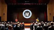 Zelenska also addressed the US Congress on the second day of her visit, becoming the first First Lady of another country to speak before the US Congress. She called for more military aid to the Ukrainian Armed Forces to protect the country from Russian invasion.[56][57]