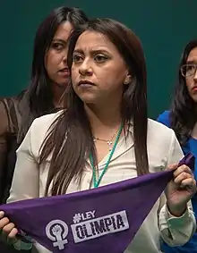 In March 2014, when she was 19 years old, she filed a bill in the Puebla Congress.[3] After her advocacy, she succeeded in having digital violence recognized. In 2018, she managed to get punished those who share intimate materials without consent, with up to six years in prison. Since then 28 states of the Mexican Republic recognize this crime.[4] On January 22, 2020, Mexico City joined these entities by publishing it in its Official Gazette.[5]