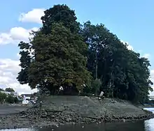 Oliver's Island at low tide in a dry summer; the far channel is dry