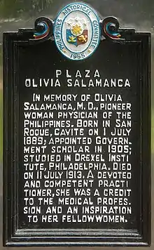 Plaza Olivia Salamanca in Manila[5] and Dr. Olivia Salamanca Memorial District Hospital in Cavite City are named after Salamanca.[6]