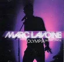 Olympia Deuxmilletrois is a 2003 album by French singer Marc Lavoine. This live album, recorded on January 24 and 25, 2003, at the Olympia (Paris) during the singer's concerts series, was his eleventh album overall and was released on May 27, 2003. The album reached the top 15 in France and Belgium (Wallonia). "Dis-moi que l'amour..." was the sole single from the album, and became a hit in France (#10).