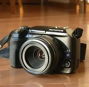 The Olympus E-300 (Olympus Evolt E-300 in North America) is an 8-megapixel digital SLR manufactured by Olympus of Japan and based on the Four Thirds System. Announced at photokina 2004, it became available at the end of 2004. It was the second camera (after the Olympus E-1) to use the Four Thirds System, and the first intended for the consumer market.