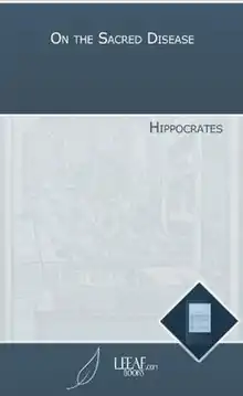 On the Sacred Disease is a work of the Hippocratic Corpus, written about 400 B.C. Its authorship cannot be confirmed, so is regarded as dubious. The treatise is thought to contain one of the first recorded observations of epilepsy in humans. The author explains these phenomena by the flux of the phlegm flowing from the brain into the veins rather than assigning them a divine origin. This turn from a supernatural to a naturalistic explanation is considered a major breakthrough in the history of medicine.[1][2]