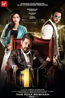 One is a 2017 Indian Bengali language action thriller film directed by Birsa Dasgupta under the banner of Shree Venkatesh Films. The film stars Yash Dasgupta, Nusrat Jahan in the lead roles and Prosenjit Chatterjee in the antagonist role in the movie.[2] It is a remake of Tamil film Thani Oruvan (2015).[3] The movie was released on 14 April 2017 all over the theatres in India.[4] The movie was not successful at the box office.