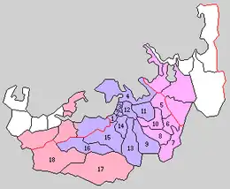 * yellow - areas formerly within the district borders during the early Meiji period