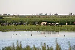 The Oostvaardersplassen (Dutch pronunciation: [oːstˈfaːrdərsˌplɑsə(n)]) is a nature reserve in the Netherlands, managed by the Staatsbosbeheer (state forestry service). Covering about 56 square kilometres (22 sq mi) in the province of Flevoland, it is an experiment[2][3][4] in rewilding.[5] It is in a polder created in 1968; by 1989, its ecological interest had resulted in its being declared a Ramsar wetland.[6] It became part of Nieuw Land National Park when that was established in 2018.